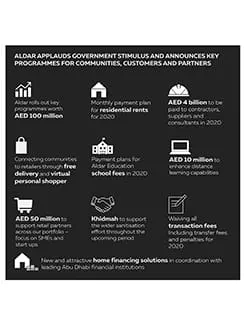 • تزويد المستأجرين في محفظة وحداتها السكنية، التي تضمّ أكثر من 5,000 وحدة، بخطط دفع شهرية لدعم وتسهيل التزامات الإيجار حتى نهاية عام 2020