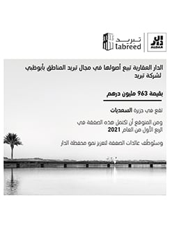 وتُعد هذه أحدث صفقات شركة الدار هذا العام بعد أن وقعت في أواخر شهر نوفمبر الماضي اتفاقية مع شركة أبوظبي التنموية القابضة "القابضة" (ADQ) تتولى الدار بموجبها إدارة وتنفيذ مشاريع رئيسية بقيمة إجمالية تقارب 30 مليار درهم. وقد ساهمت هذه الصفقة في تحقيق نمو كبير على مستوى وحدة إدارة المشاريع التطويرية التابعة لأطراف خارجية، والتي تتضمّن كذلك عقوداً حكومية لتطوير البنية التحتية في جزيرة السعديات ومنطقة ميناء زايد في أبوظبي.